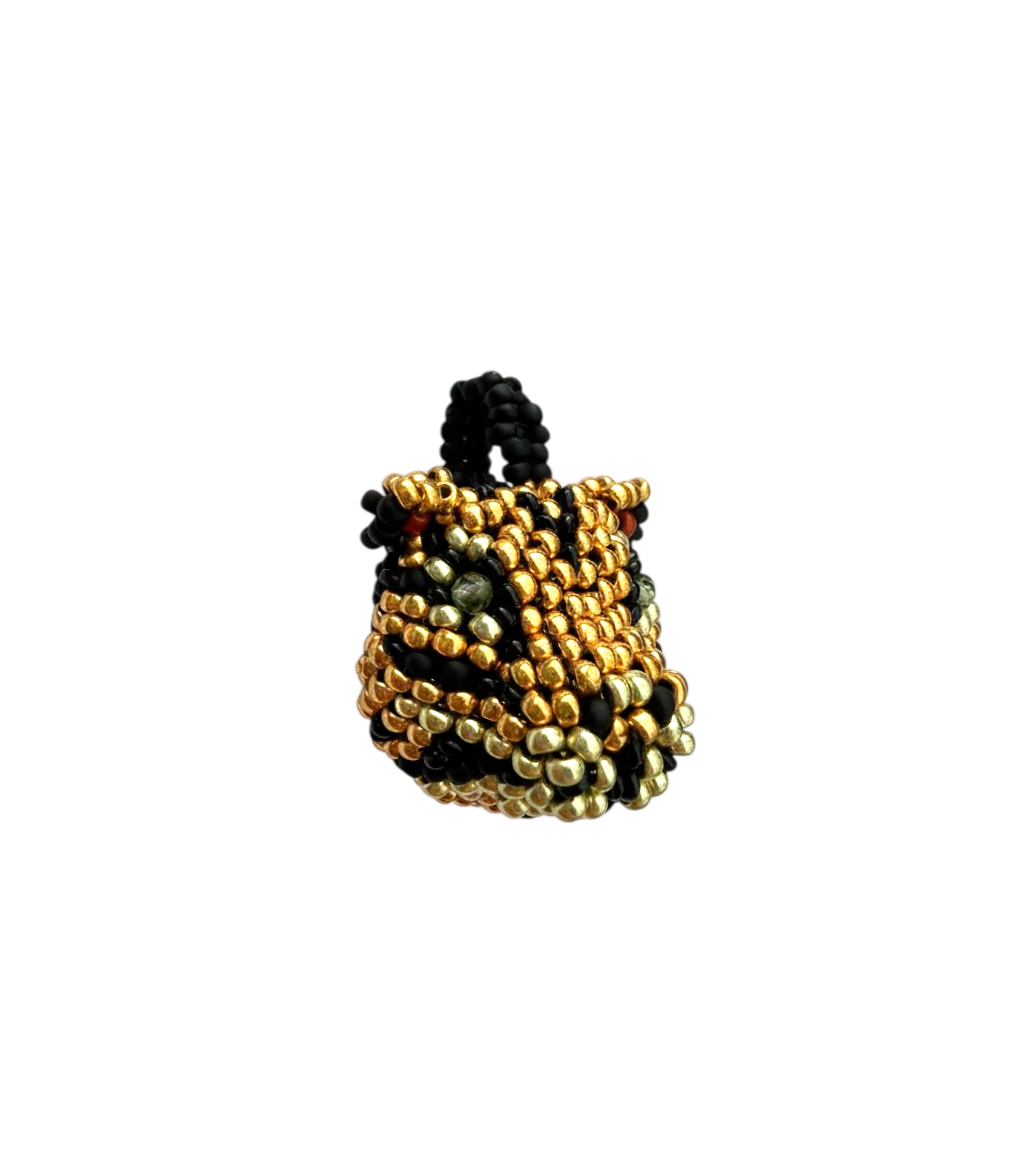 Handcrafted with beads, applied one by one by Indigenous artisans, this piece features a clasp and a custom gold charm. A design enriched with cultural heritage and artisanal value.