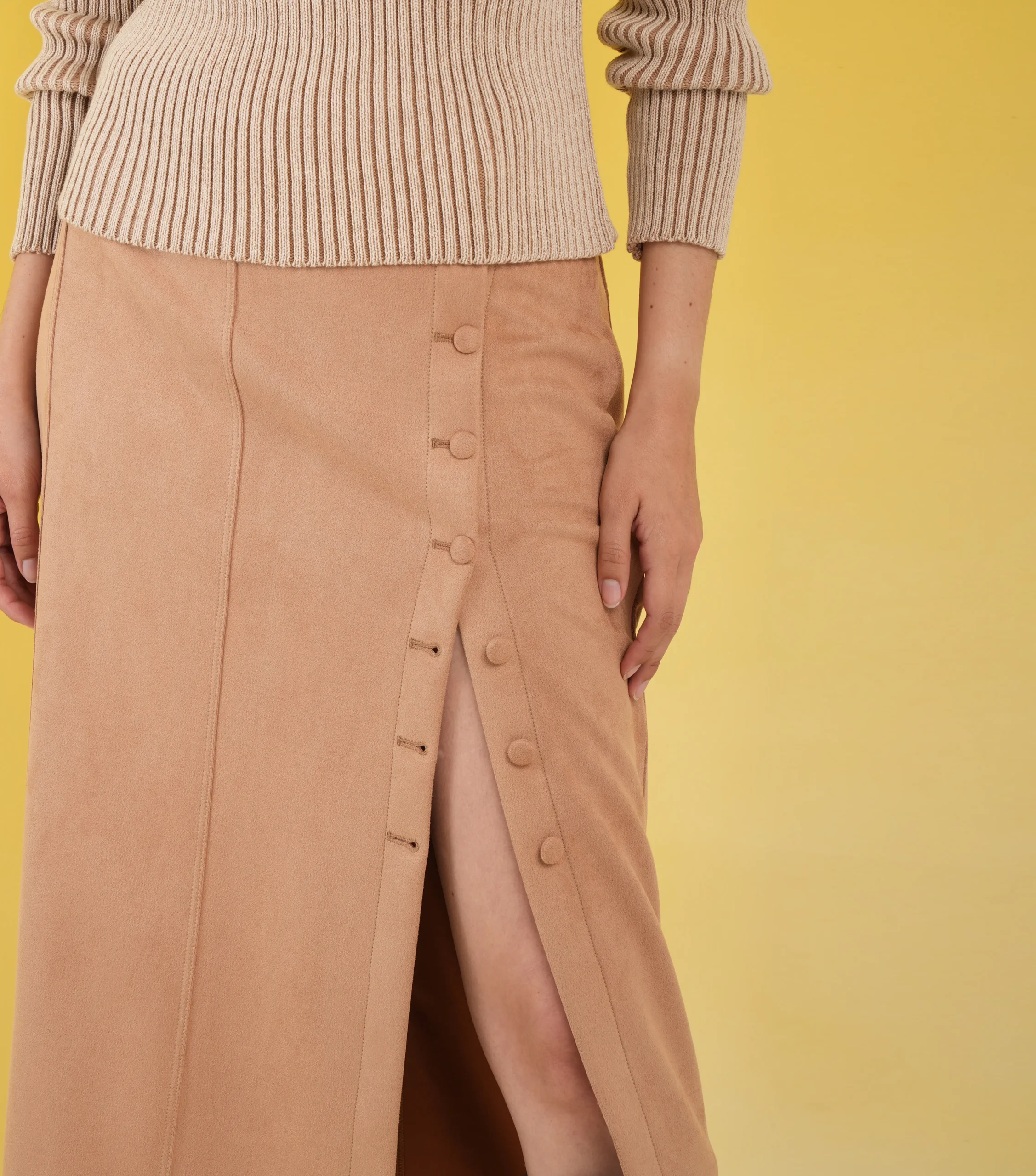 Querube midi skirt, hand-knit and adorned with special woven details at the hem by Colombian artisans. It features a body-hugging fit and a high waist with an elastic waistband. Perfect to wear with the Querube Top or Verso knit sweater.